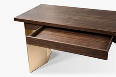 Artful craftsmanship is evident in our newest offering in the Artois Collection. Rich, dark brown oak is flawlessly contrasted with a hand-burnished brass. We added a touch-open drawer for seamless organization. Clean lines and exquisite details make the Artois Desk a welcome addition to any space in your home.